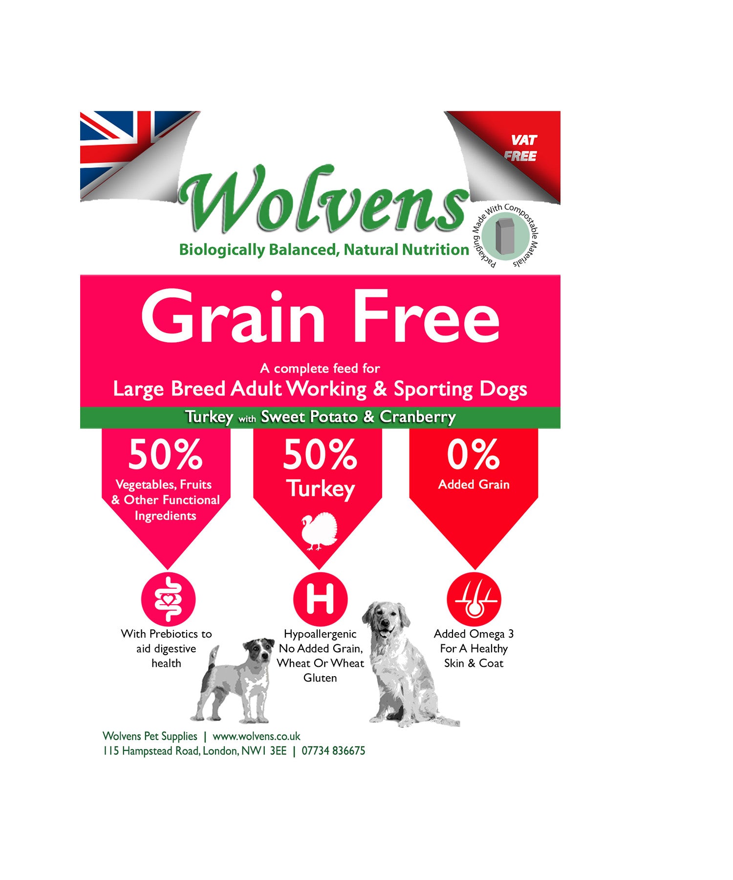 Wolvens Grain Free Adult Large Breed. Turkey with Sweet Potato & Cranberry