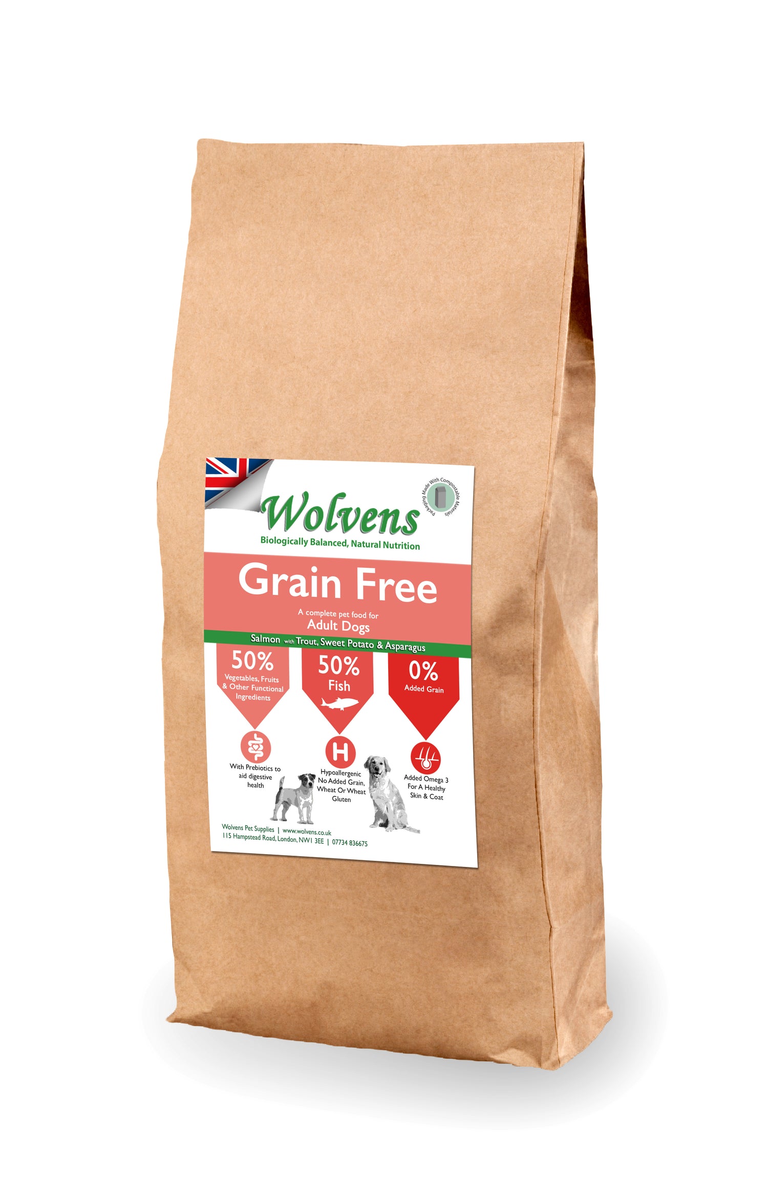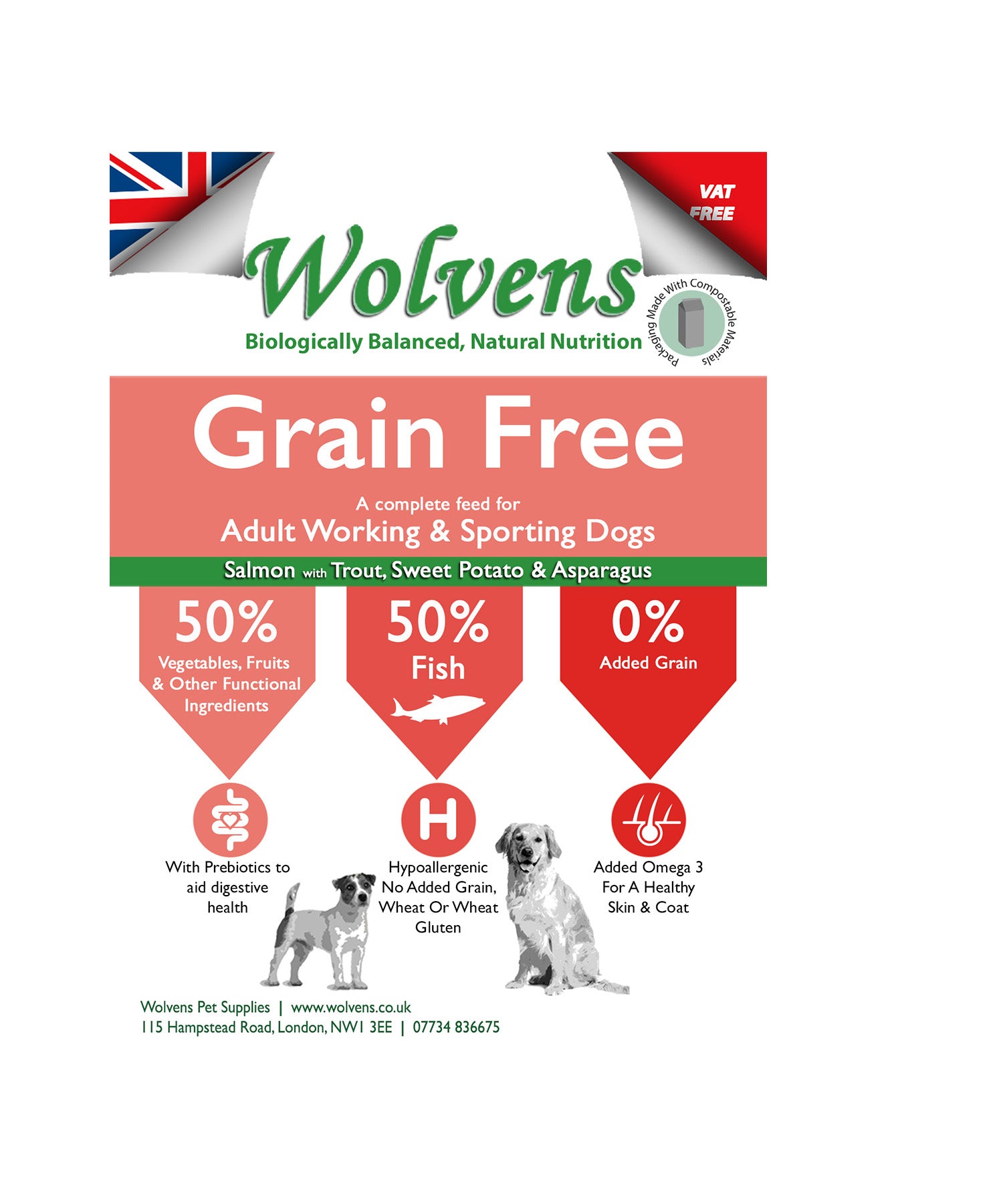 Wolvens Grain Free Adult Salmon, Trout with Sweet Potato & Asparagus.