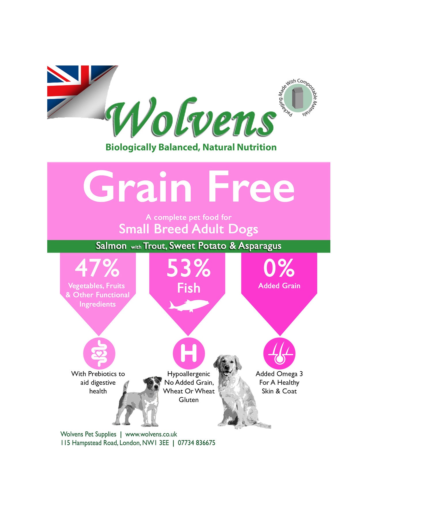 Wolvens Grain Free Small Breed. Salmon, Trout, Sweet Potato & Asparagus. 6kg