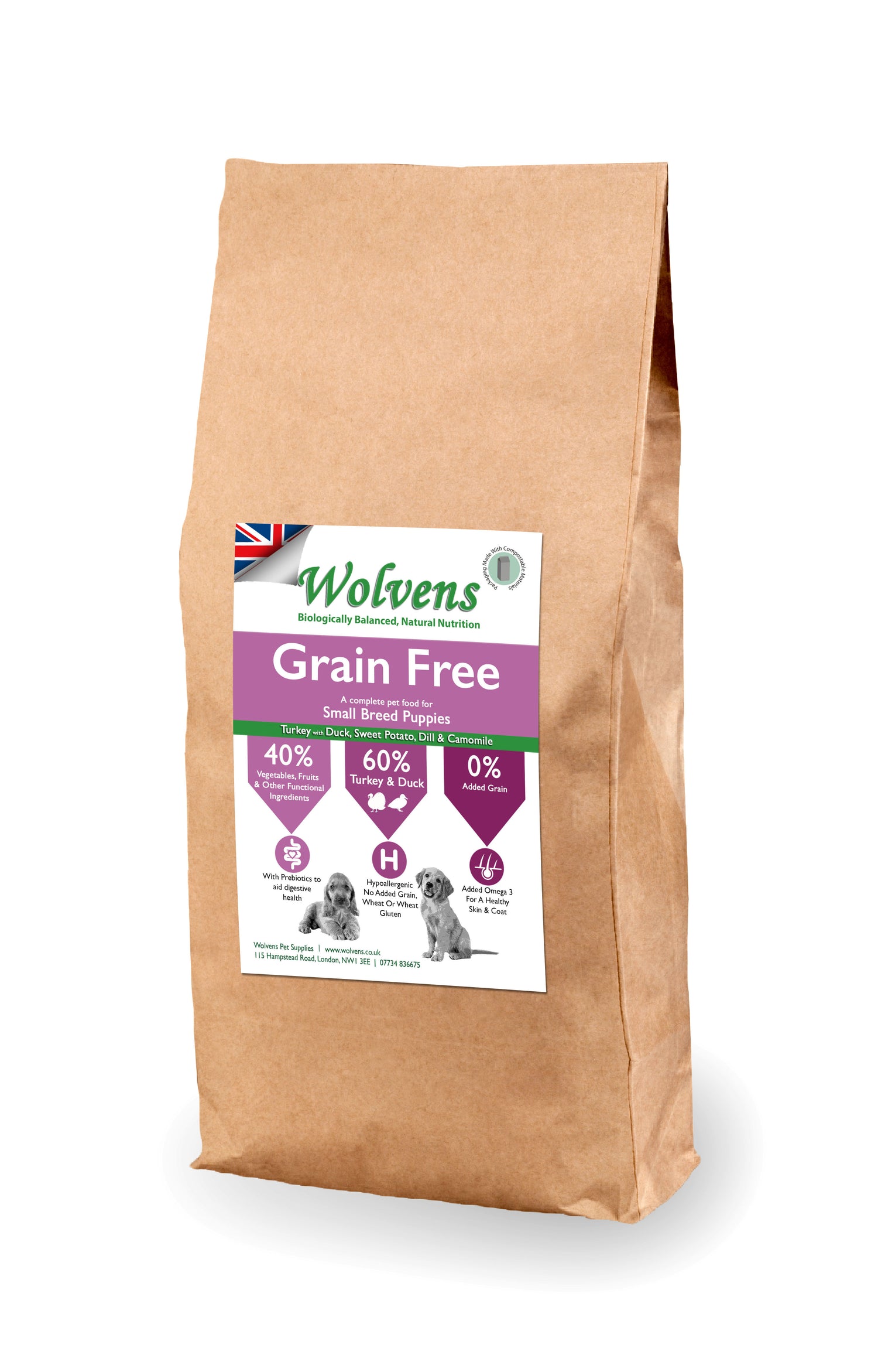 Wolvens Grain Free Small Breed Puppy Food. Turkey, Duck with Sweet Potato, Dill & Camomile
